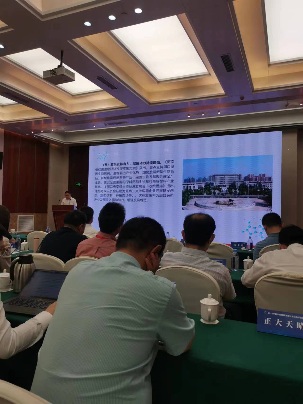 2023中国产业转移发展对接活动(河南)之——生物医药产业专题对接活动于6月20日下午在郑州黄河迎宾馆二楼会议室举办。河南省政协副主席戴柏华,工信部消费品司司长何亚琼,中国医药企业管理协会会长吴海东、副会长王学恭,河南省医保局价格招采处副处长茹生龙出席本次活动并讲话。周口市工信局副局长曹楠代表周口现场推介发言,四方药业、巨鑫生物科技、乐普医药等10多家企业应邀参加本次活动并和外地企业深度对接洽谈。